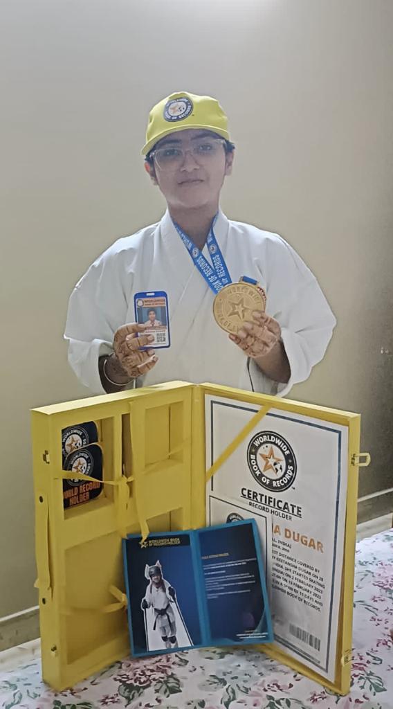 The World Record Of Longest Distance Covered By Skating (Female) Is Achieved By Geetansha Dugar On 28 February 2023 In West Bengal, India. She Started Skating From Shyam Nagar, Kolkata (India) On 2 February 2023 And Finished In Thimphu, Bhutan On 13 February 2023 And Covered 819. 5 Km Distance In A Span Of 11 Days And Has Set A Record For The Worldwide Book Of Records.