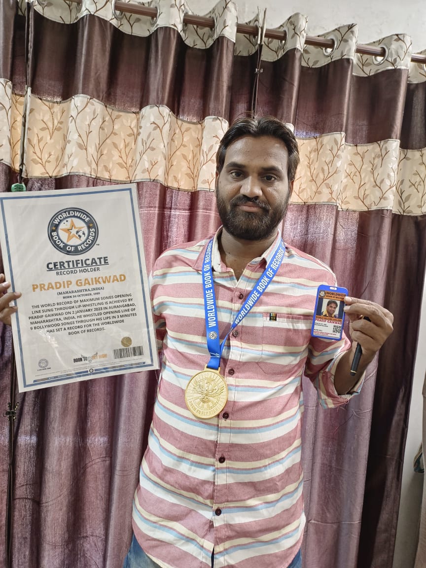 THE WORLD RECORD OF MAXIMUM SONGS OPENING LINE SUNG THROUGH LIP -WHISTLING IS ACHIEVED BY PRADIP GAIKWAD ON 2 JANUARY 2023 IN AURANGABAD,