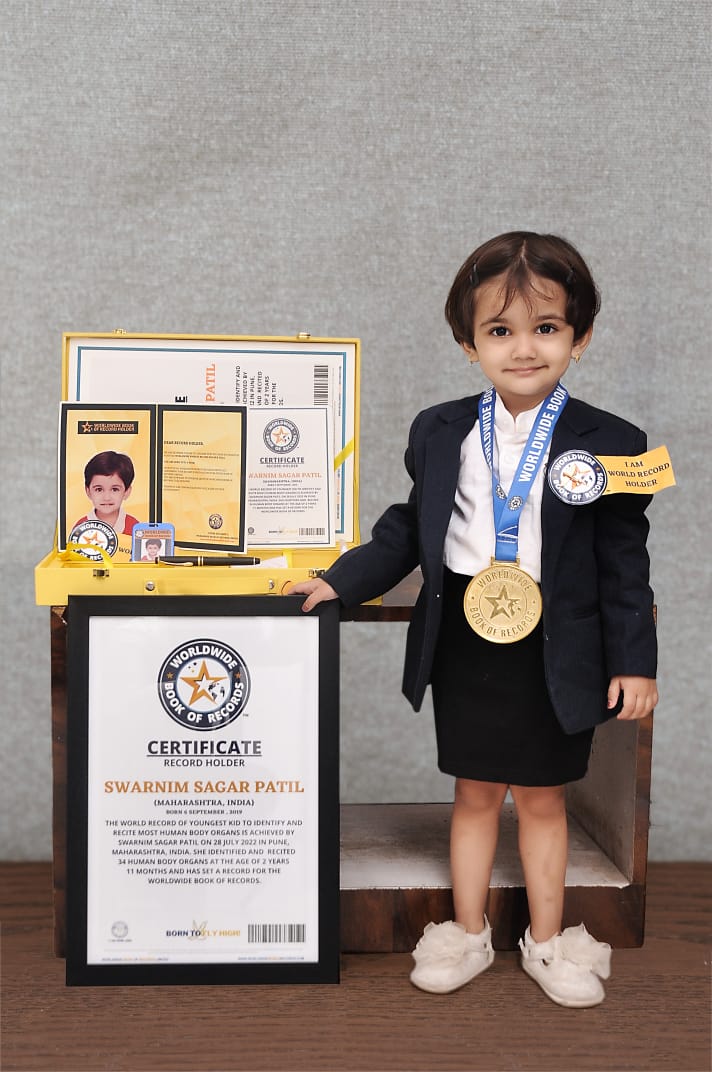 THE WORLD RECORD OF YOUNGEST KID TO IDENTIFY AND RECITE MOST HUMAN BODY ORGANS IS ACHIEVED BY SWARNIM SAGAR PATIL ON 28 JULY 2022 IN PUNE, MAHARASHTRA, INDIA. SHE (6 September 2019) IDENTIFIED AND RECITED